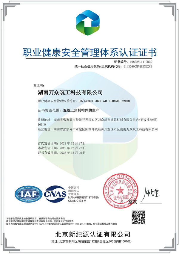 職業(yè)健康安全管理體系認(rèn)證證書(shū)